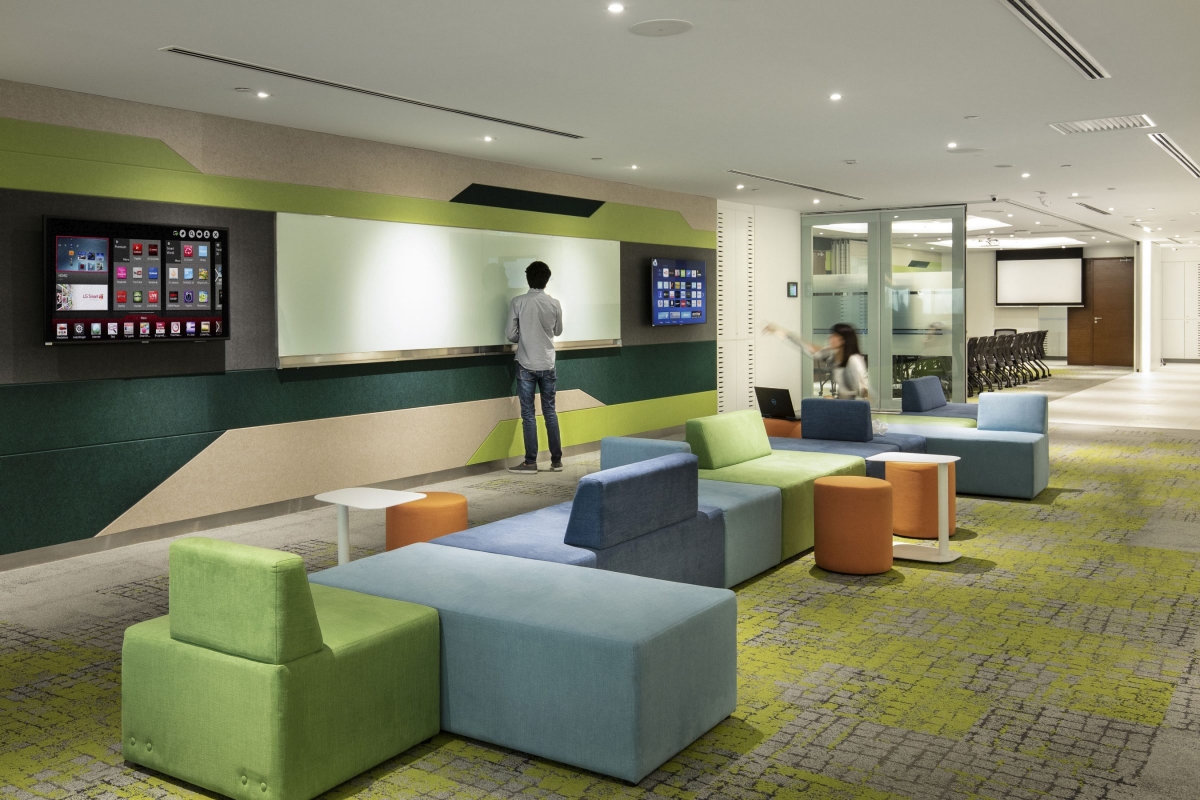 The ‘Adaptive Worklife Experience’ is demonstrated with the diverse application of furniture – enabling employees to work in a way that suits them – whether individually or in groups The private spaces accommodate the human resource department and key managerial rooms. The entire design further encourages collaboration through the creation of huddle spaces, social corners and the games room. Echoing the company’s investment on human resource, the games room not only provides a space for the staff to relax and blow off steam but also acts as an informal space to brainstorm and share ideas.