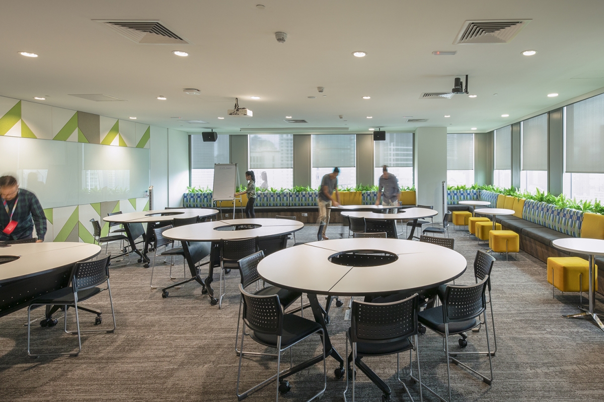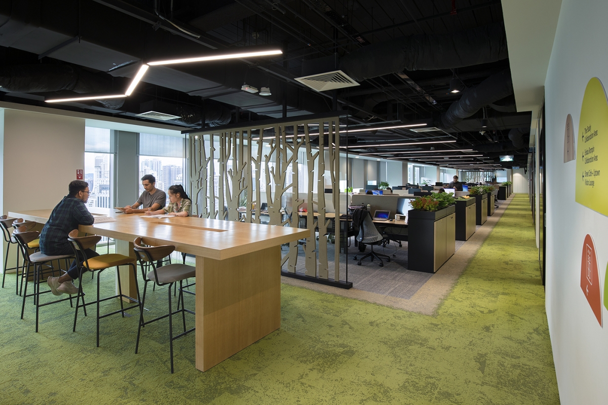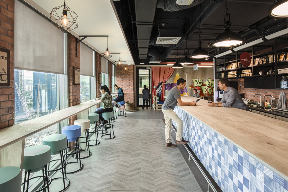 A truly ‘flexible & social’ workplace has different spaces for people to collaborate, socialise, focus and energise, representing ABW working in the future. Transition in and out of different work settings (ranging from quiet rooms to meeting tables to social areas with soft seating) throughout the day not only helps to motivate ideation and break down social barriers and power distances but also reduces tension and stress, inducing better work quality by letting people unwind in a safe and comfortable space. Throughout the design process, thinking ahead is vital to protect a client’s real estate investment.