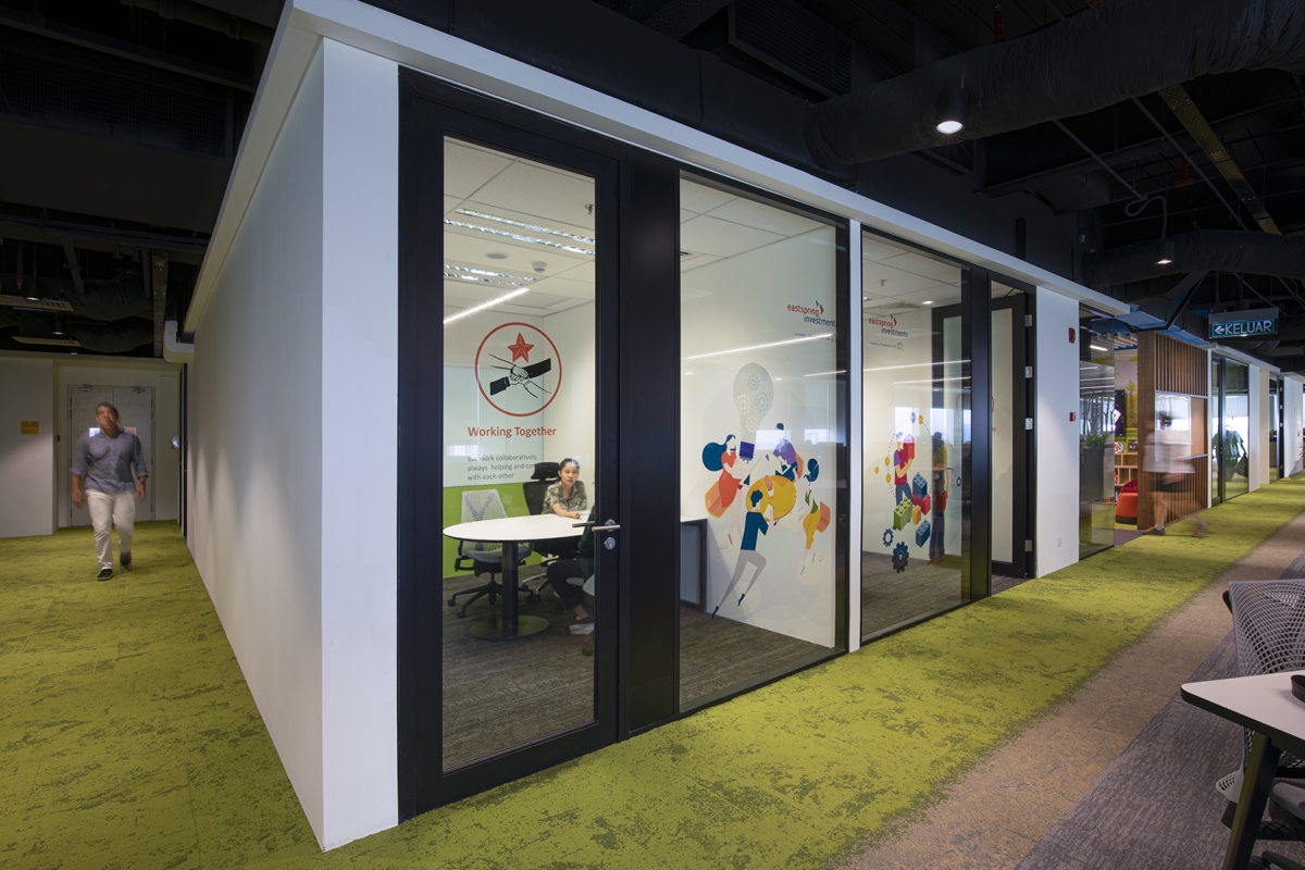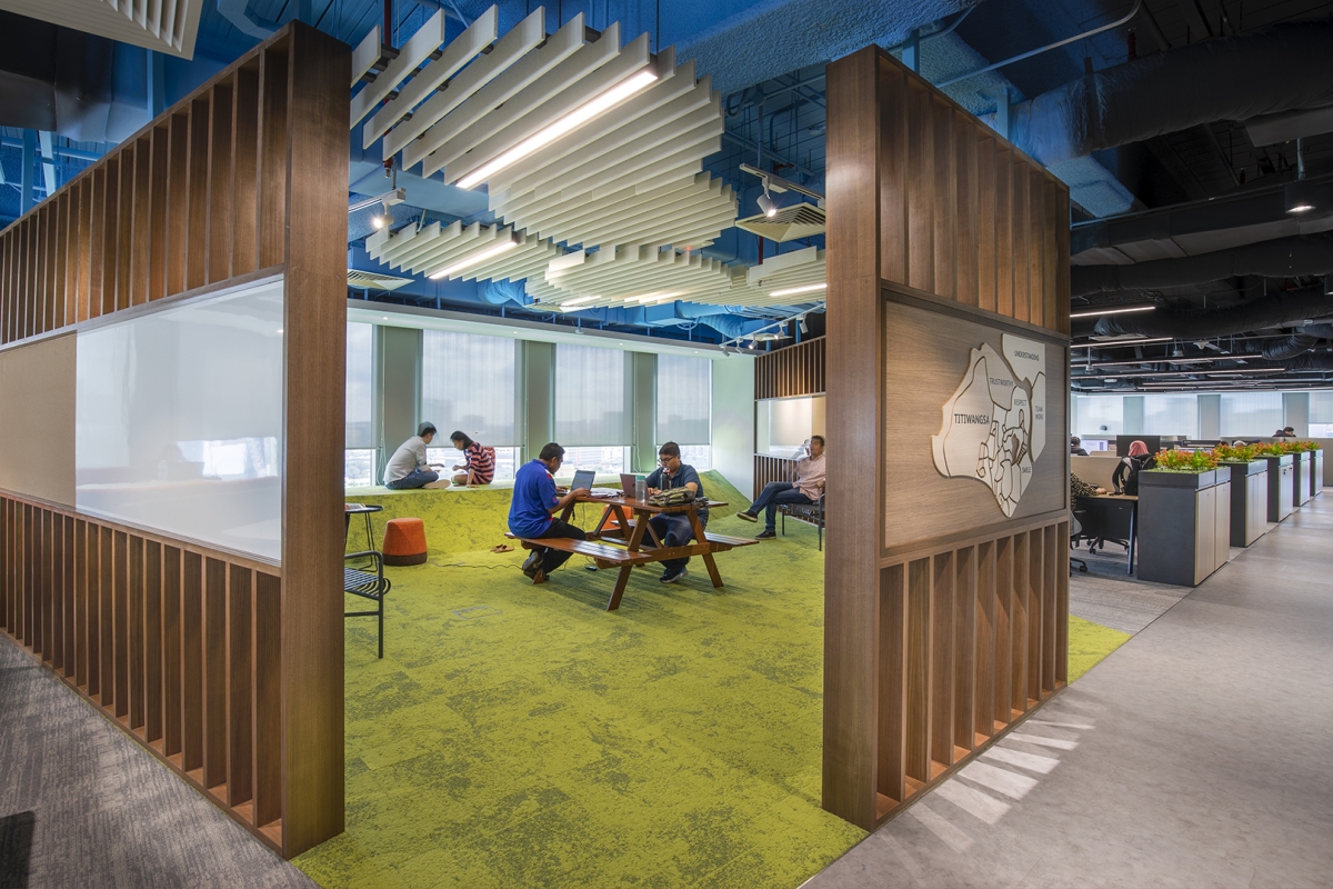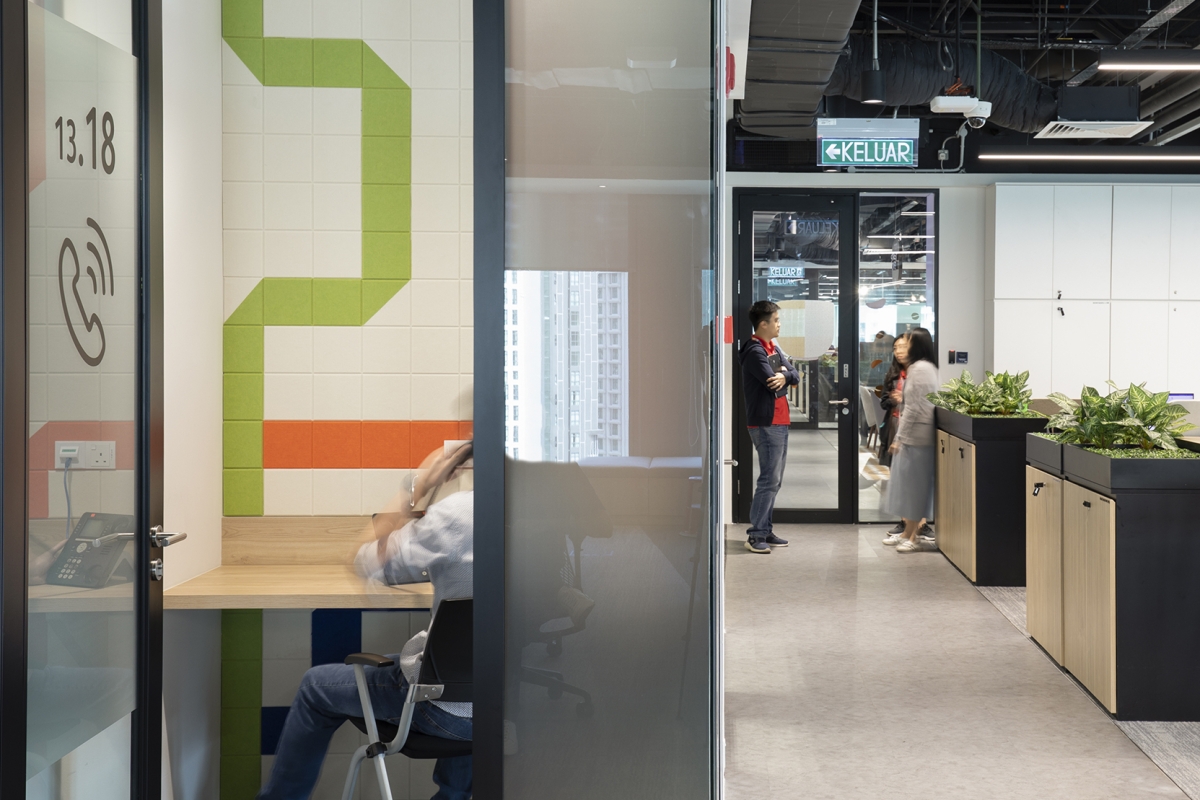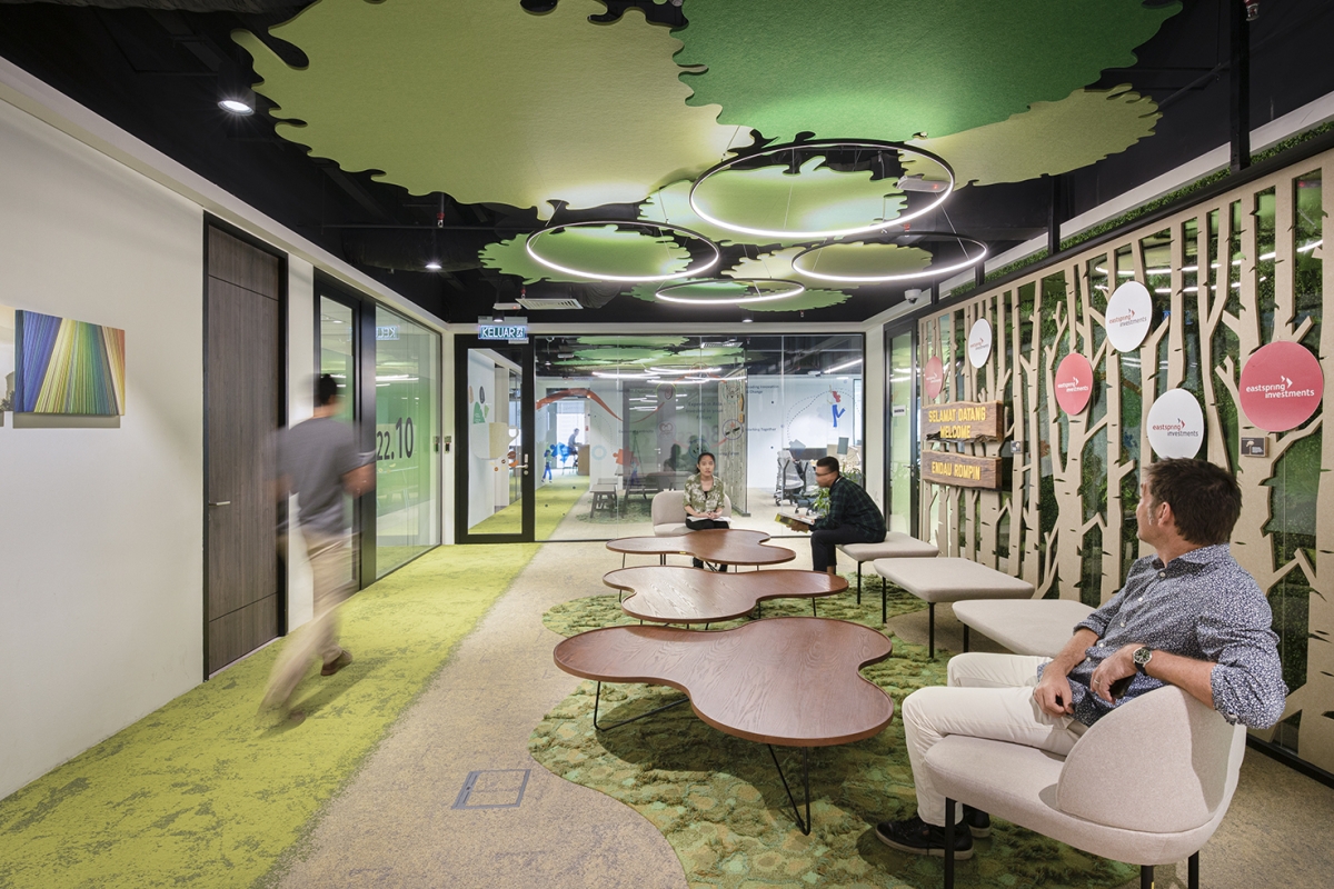 A truly ‘flexible & social’ workplace has different spaces for people to collaborate, socialise, focus and energise, representing ABW working in the future. Transition in and out of different work settings (ranging from quiet rooms to meeting tables to social areas with soft seating) throughout the day not only helps to motivate ideation and break down social barriers and power distances but also reduces tension and stress, inducing better work quality by letting people unwind in a safe and comfortable space. Throughout the design process, thinking ahead is vital to protect a client’s real estate investment.